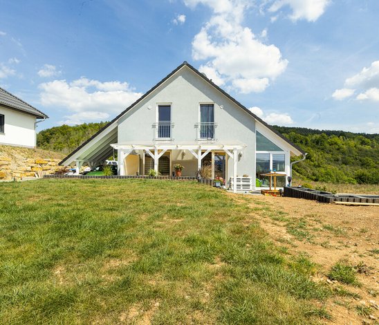 Als Familie L. in das idyllische Creuzburg in Thüringen zog, stand fest: Raus aus der Mietwohnung, rein ins Eigenheim. Sie schauten sich zunächst Häuser zum Kauf in der Nähe an, doch die entsprachen nicht den Anforderungen des Paares. Schließlich wurden sie von ihrem Immobilienmakler darauf aufmerksam gemacht, dass im Ort ein neues Baugebiet entstehen würde. „Für den Hausbau kam für uns eigentlich nur die Massivbauweise infrage“, berichtet die Familie. Die Bauherren zögerten also nicht lange und sicherten sich ein Grundstück, als Town & Country Haus mit der Erschließung begann.